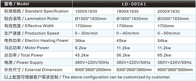 | 強力膠復(fù)合機/貼合機-EVA強力膠復(fù)合機/貼合機LD-005A1主要技術(shù)參數(shù) / Major technical parameters |