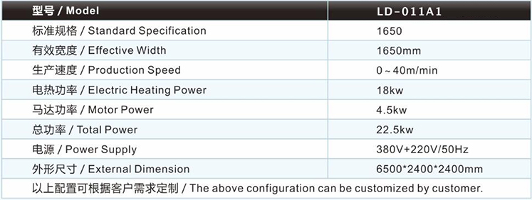 | 表面收卷單版皮革改色機LD-011A1的主要技術(shù)參數(shù) / Major technical parameters |