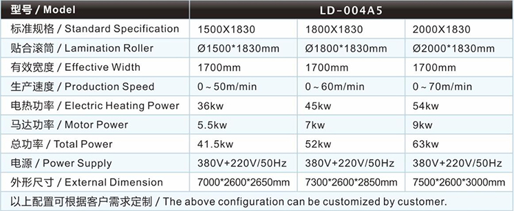 | 內(nèi)衣復(fù)合機(jī)/貼合機(jī)-立式單槽水膠網(wǎng)帶無(wú)痕復(fù)合機(jī)/貼合機(jī)LD-004A5的主要技術(shù)參數(shù) / Major technical parameters |